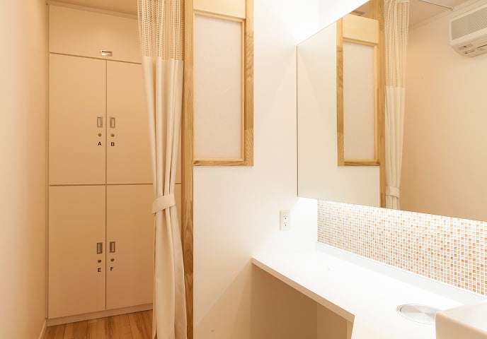 更衣室は、鍵付きのロッカーで安心です。パウダールームも更衣室内にご用意しました。