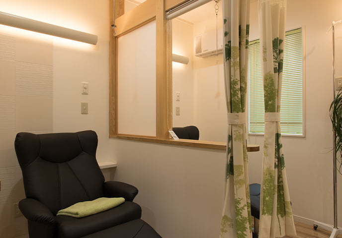 点滴の患者さまや検診後の患者さまは、落ち着いた内装の回復室で、ゆっくりおやすみいただけます。