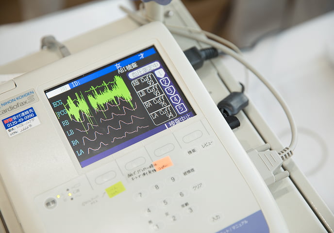 心臓の働き、血液循環の状態を調べ、動脈硬化や心筋梗塞等の簡易検査を行います。